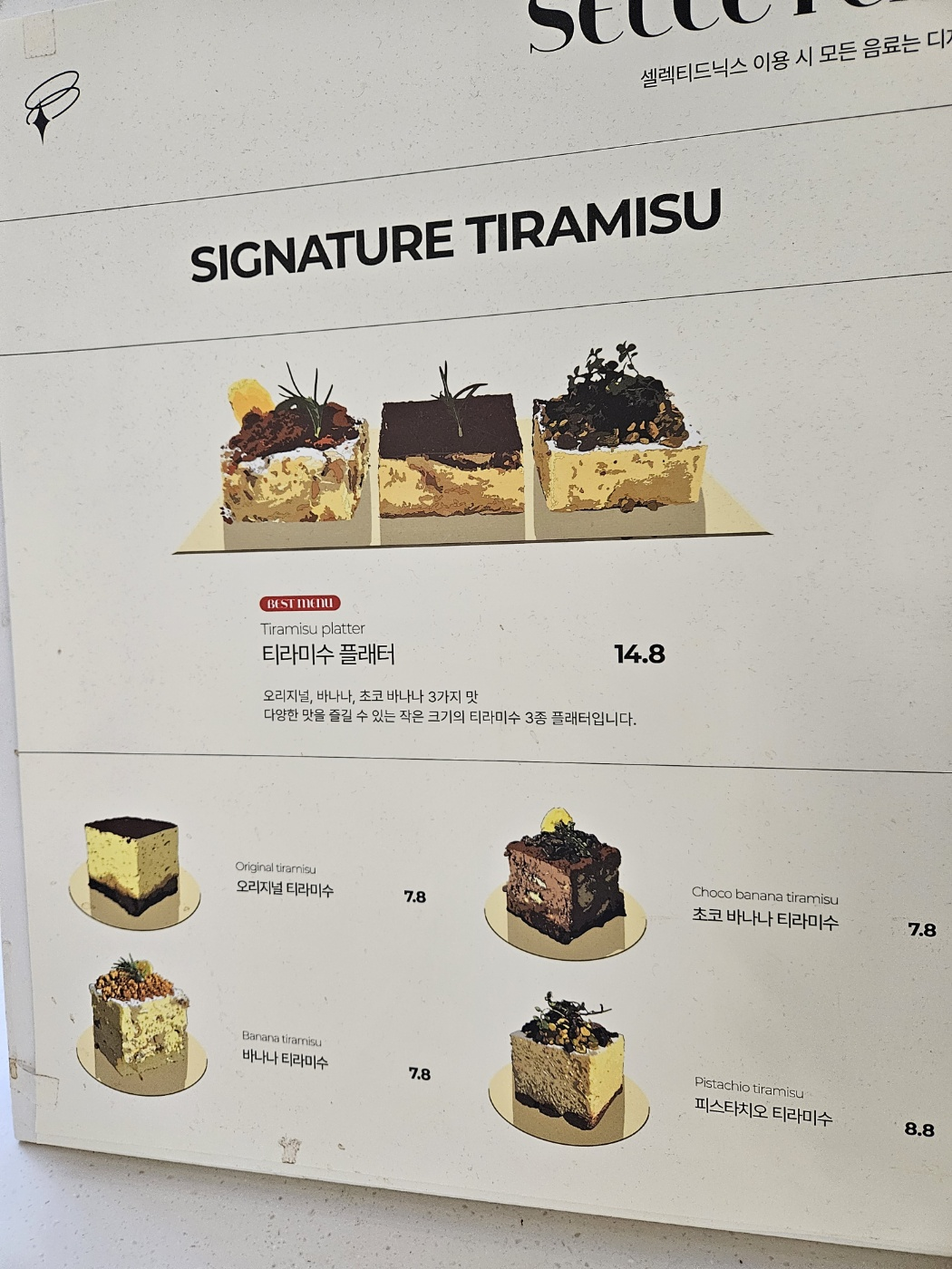 셀렉티드닉스는 티라미수가 유명하다고 합니다.