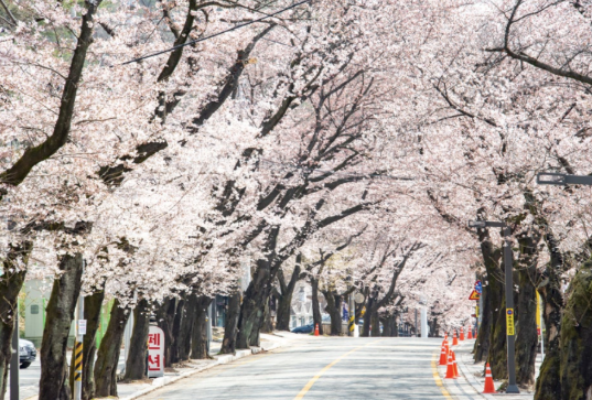 4.5km 이상 이어지는 벚꽃 터널은 전국에서도 손꼽히는 규모입니다. 사진과 영상 콘텐츠를 남기기에도 최적의 장소예요.