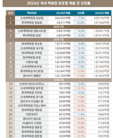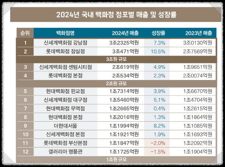 2024년 국내 백화점 매출 순위 !!