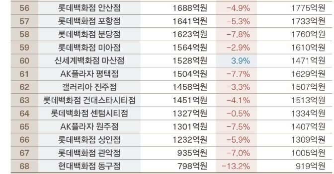 2024년 백화점 68개 점포 총 매출은