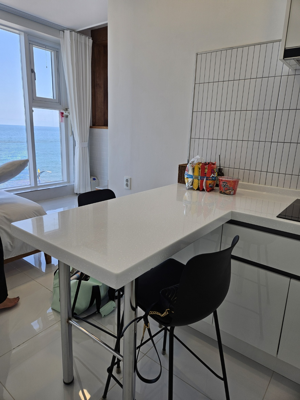 위치가 주변에 편의점이 5분내로 없기 때문에 물, 컵라면, 과자, 주류 등 묵호역 근처 편의점이나 바다마트에서