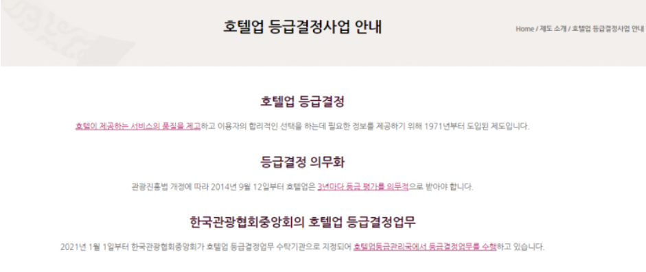 등급 결정 대상 호텔의 종류도 총 6가지가 있습니다.