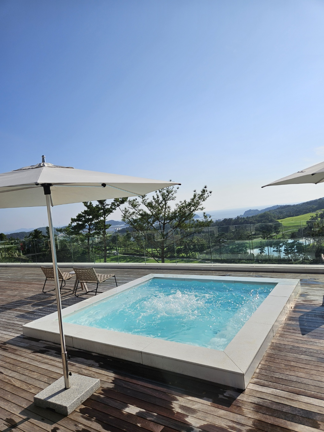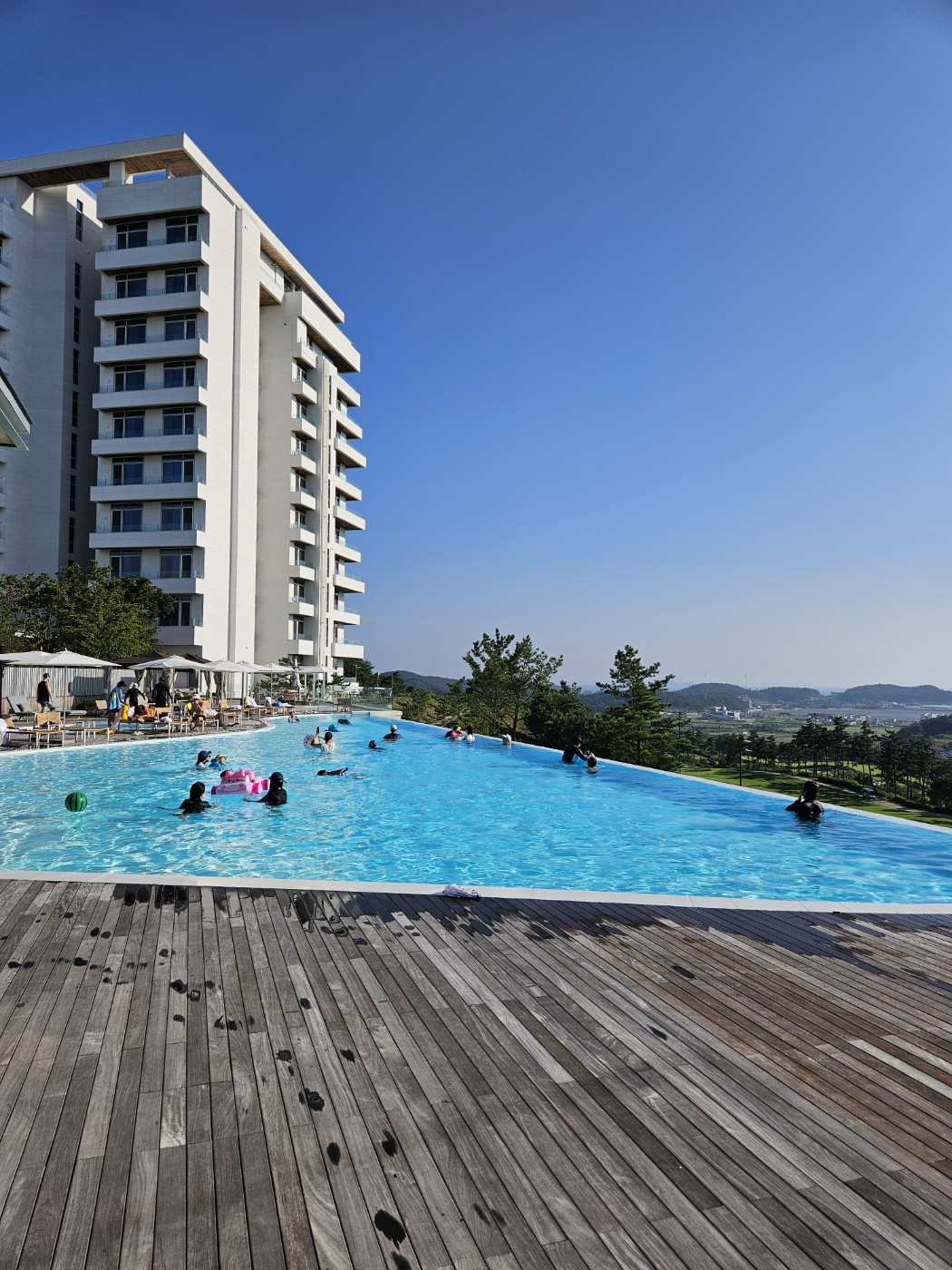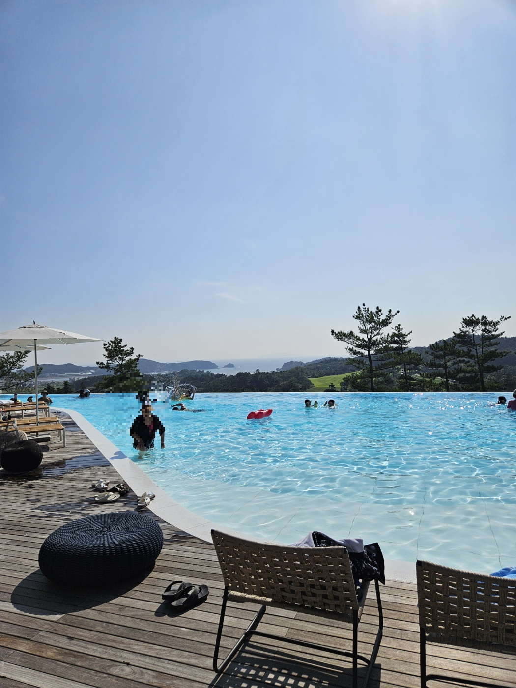 인피니티풀이 작아보이는데 생각보다 들어가보면 꽤 넓습니다. 깊이는 1m38로 아이들이 들어가기에는 조금 깊은 편이고,