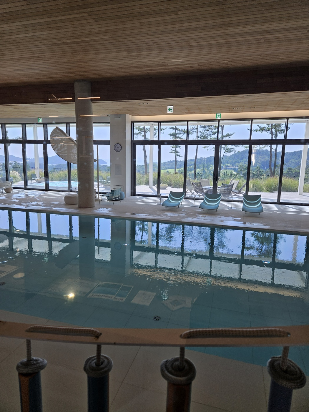 실내 수영장도 매우 깔끔하고 통창으로 외부까지 다 볼 수 있는 멋진 수영장입니다.