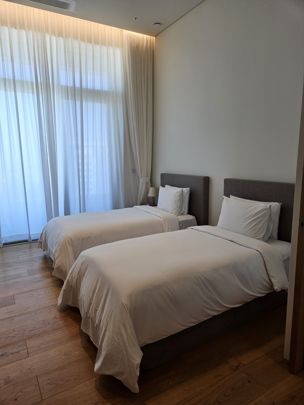 싱글침대 2개가 있는 서브방(거실과 연결)과 더블침대 1개가 있는 메인방으로 구성되어 있습니다.