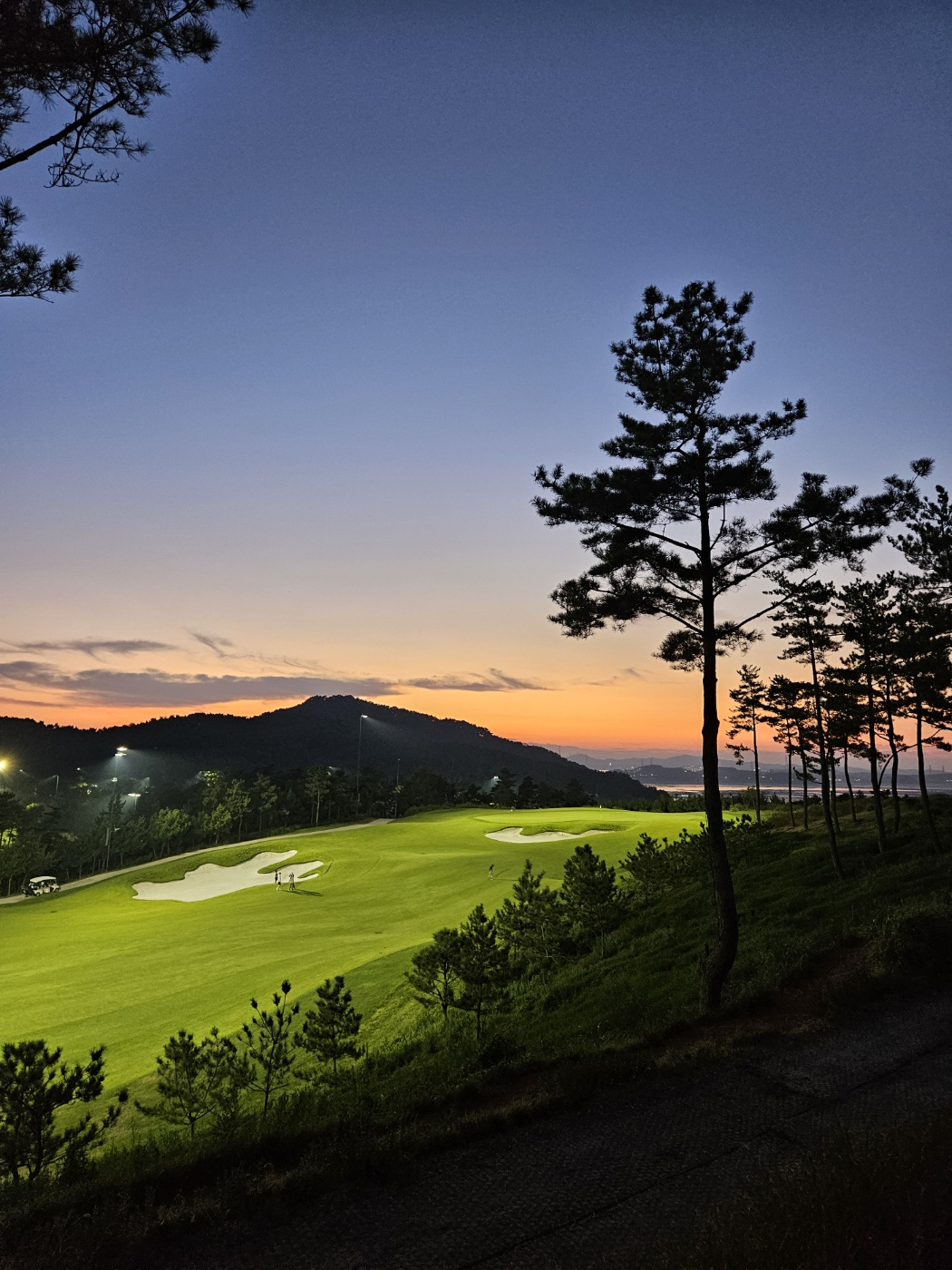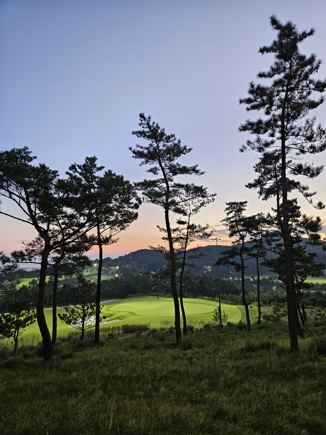 와인을 먹다가 잠시 밖에서 야간 골프장 뷰를 보았는데요. 진짜 노을지는 모습이 너무 이쁘더라구요.