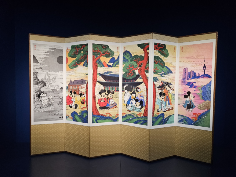 6폭 디지털 프린트 병풍에는 "미키와 친구들이"