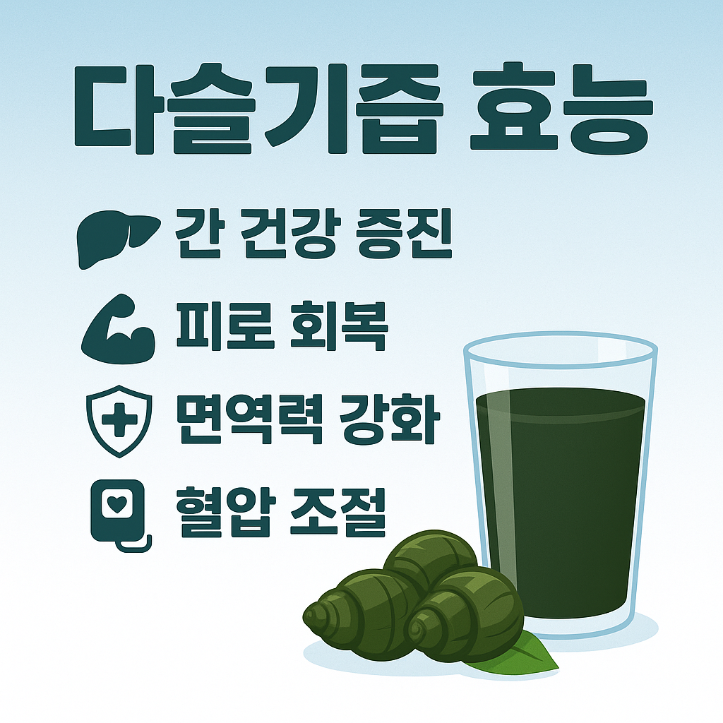 | 다슬기즙 | 타우린, 아미노산 | 자연 성분, 부작용 적음 | 가격이 다소 높음 |