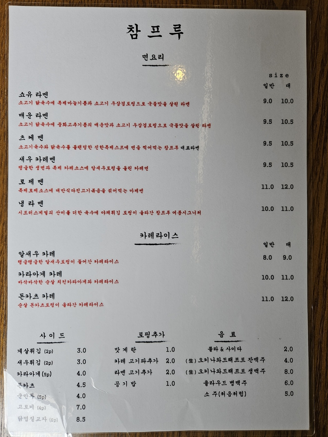 라멘뿐 아니라 카레라이스나 튀김 종류도 있습니다.