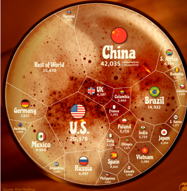 다만, 국가 전체로 봤을 때 맥주 소비량 순위는