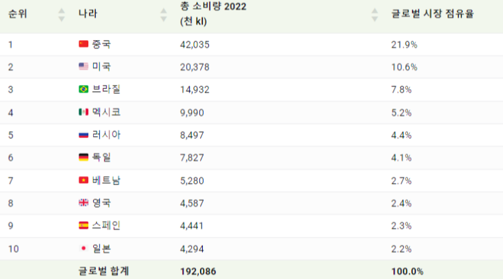 기준은 2022년 소비량입니다.