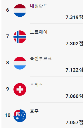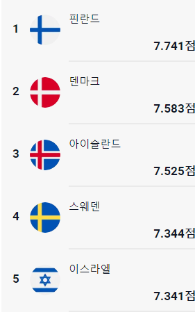 2. 2024 행복 지수 순위 TOP10