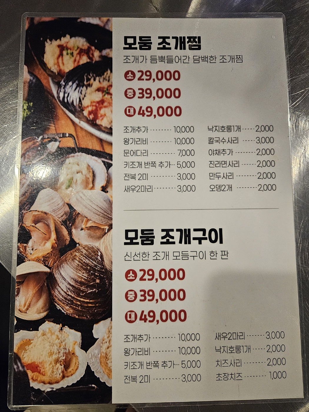 일단, 조개찜 소자 29,000원입니다!!