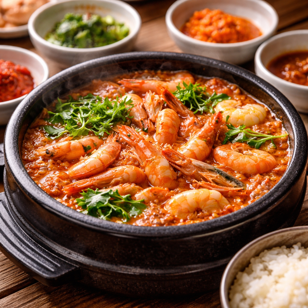 충북 청주를 중심으로 오랫동안 내려온 향토 음식으로, 된장 국물에 무, 애호박, 냉이, 미나리 같은 채소를 넣고 끓인 뒤 새뱅이(민물새우)를 넣어 완성합니다. 수제비를 함께 넣어 든든함을 더한 것도 이 집만의 특징이에요.