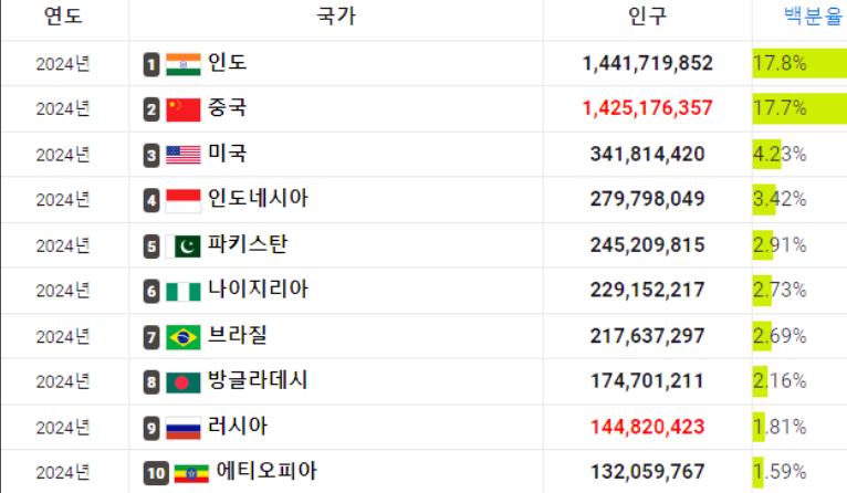 오늘은 세계 인구 순위에 대해 알아보았는데요.