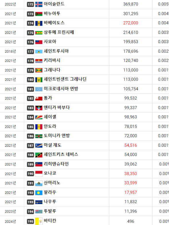 대한민국도 전세계 195개 국가 중(국가로 승인된 곳)
