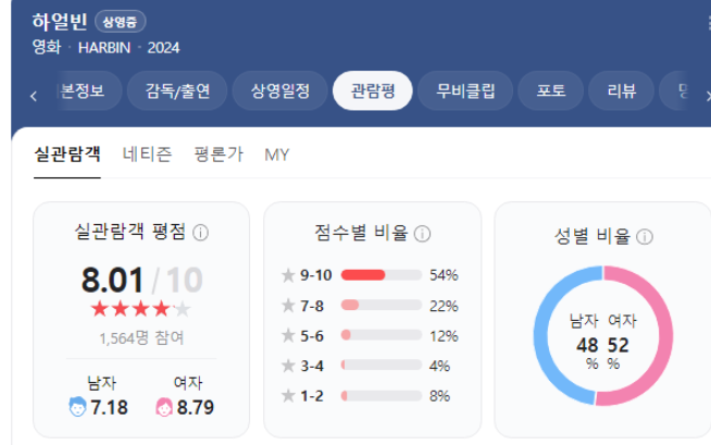 하얼빈의 경우 개봉일이 24년 12월 24일이기 때문에