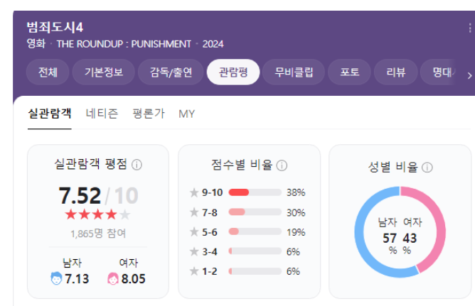 범죄도시 4의 평점은
