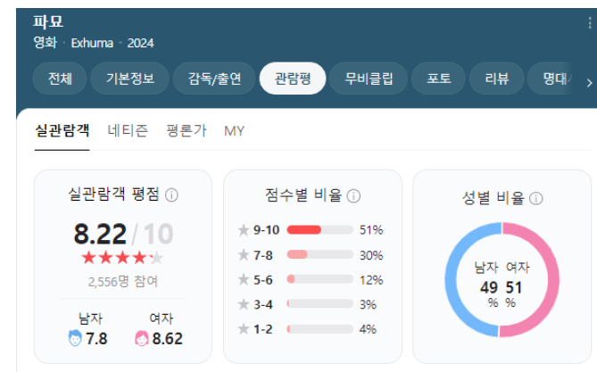 대망의 1위는 파묘 입니다!