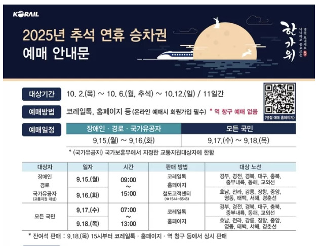 1. 2025년 추석 기차표 예매 일정 비교