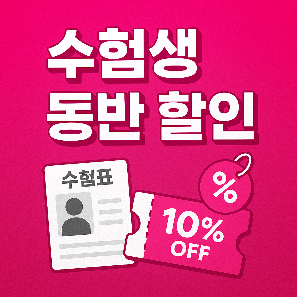 ✅ 항공권: 온라인 예매 시 '수험생 할인' 선택 후 탑승일 공항에서 수험표 제시