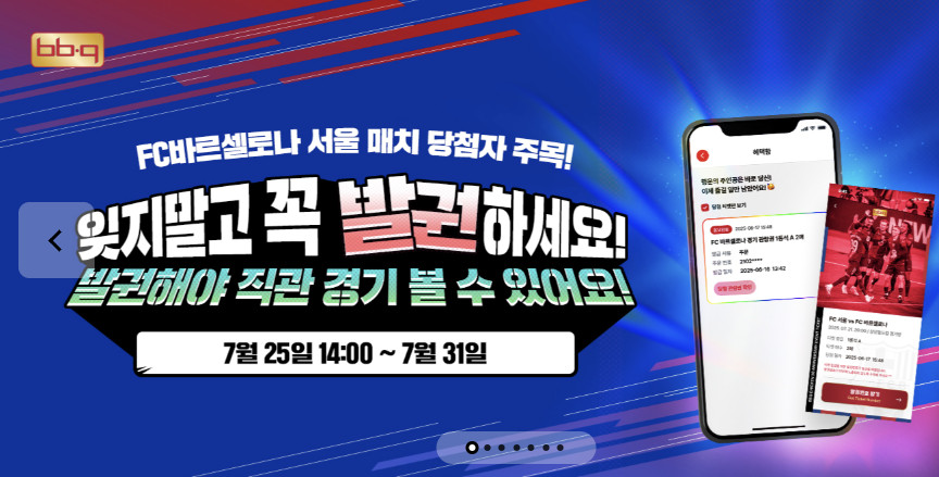 놓치지 말고 FC바르셀로나의 방한 경기 현장 or 중계로 함께 즐겨보세요!
